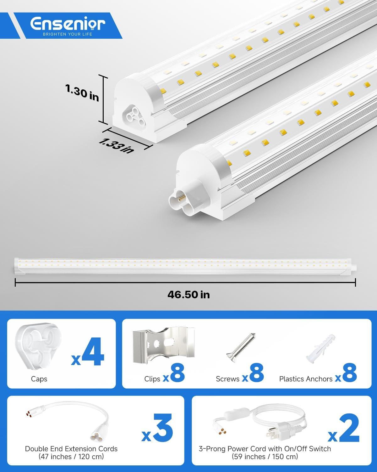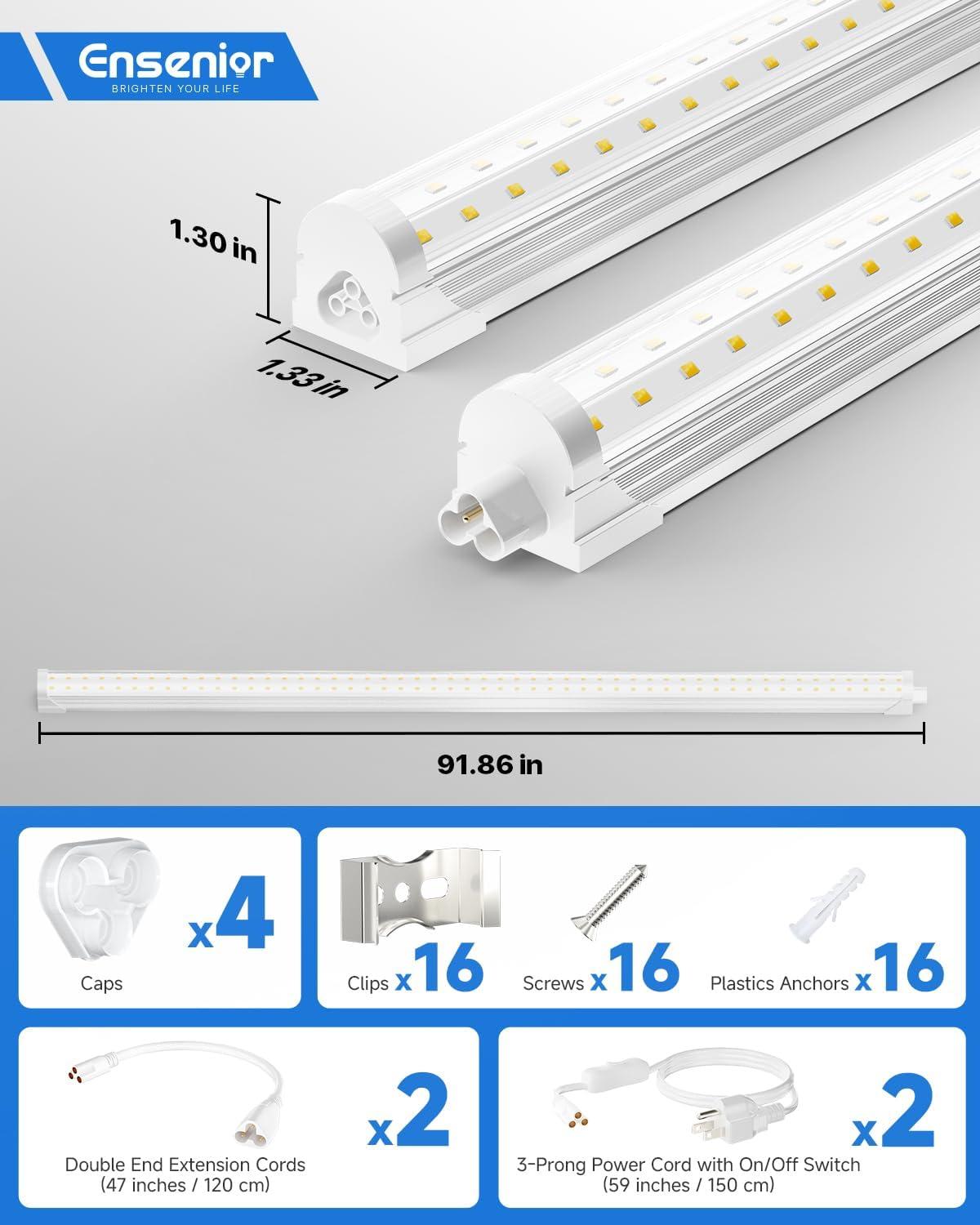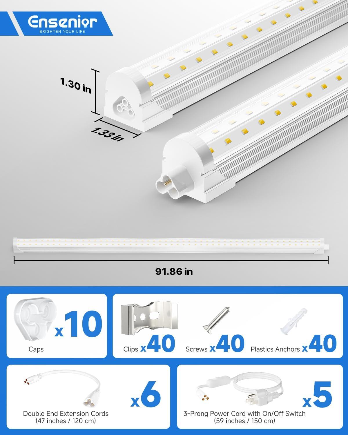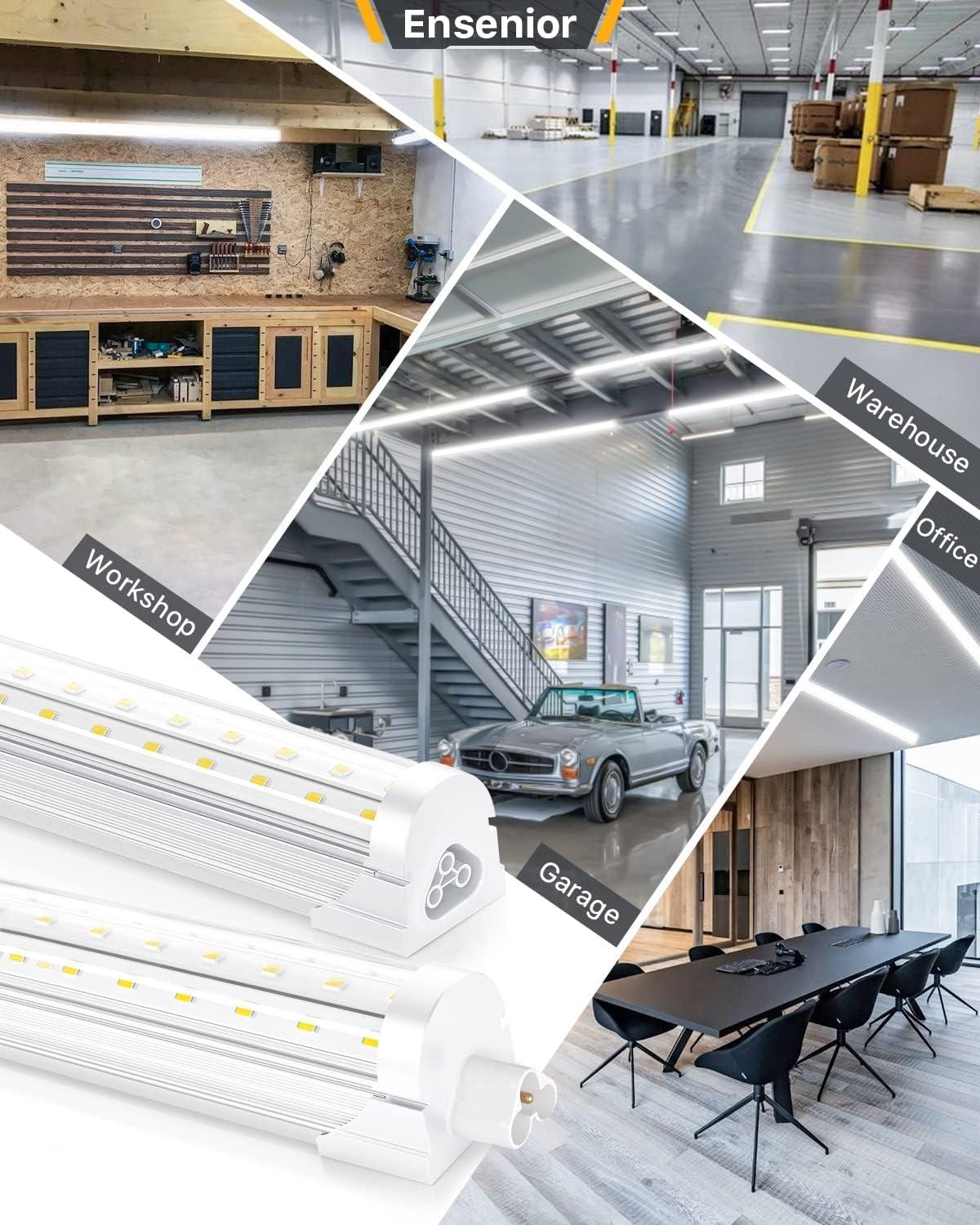 Ensenior 10 Pack 8 FT Led Shop Lights, 6000K Clear White, 10000LM Super Bright, 72W Equivalency 936W, Commercial Bay Lighting, U-Shaped Linkable Shop Lights Plug in for Garage, Workshop, FCC Certified(5000K)