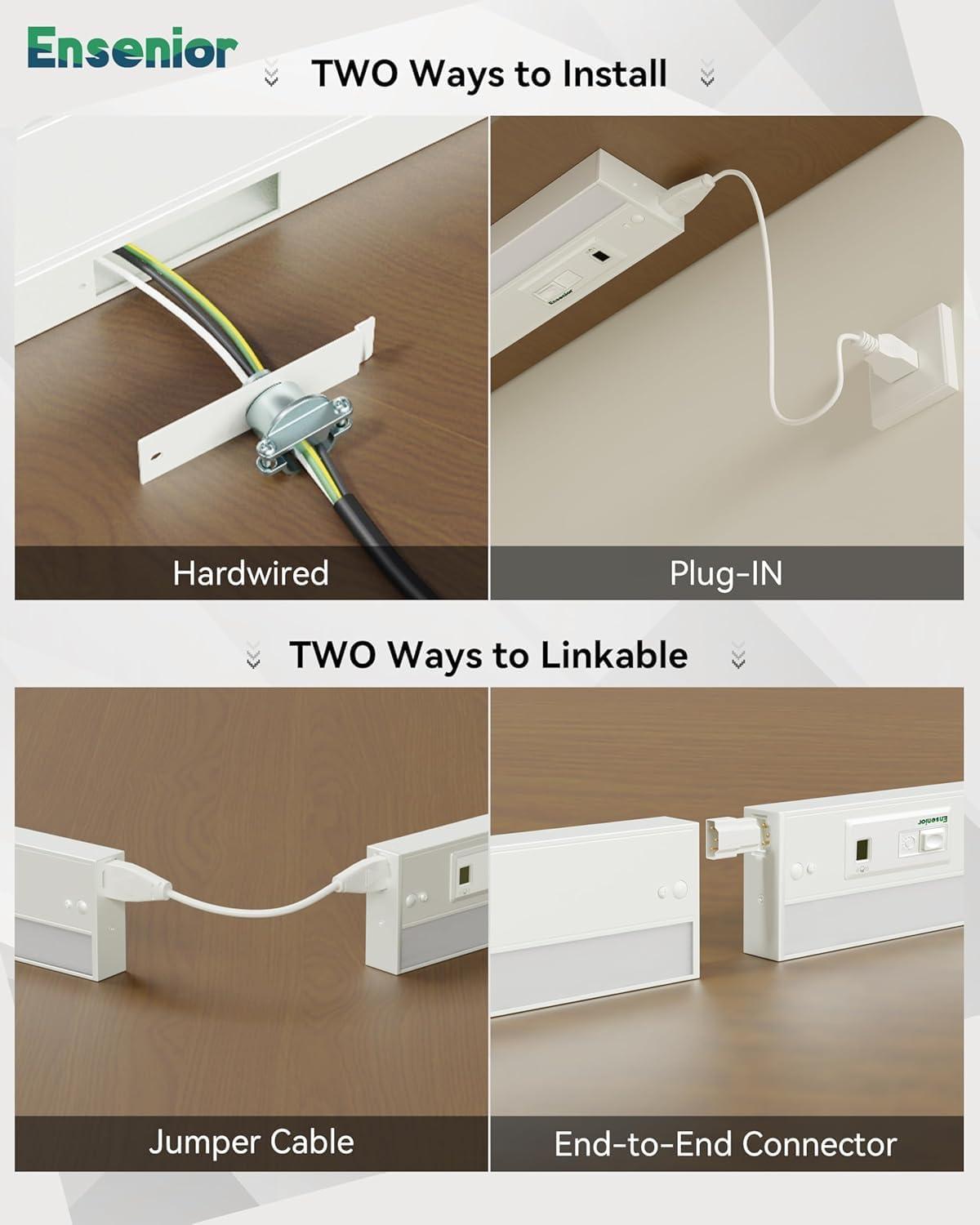 Easy Installation: Choose hardwired or plug-in setup. When hardwiring isn’t an option, simply use the plug-in method for a quick, convenient way to bring bright, even light to your space. Ideal under cabinet LED lighting for modern kitchens