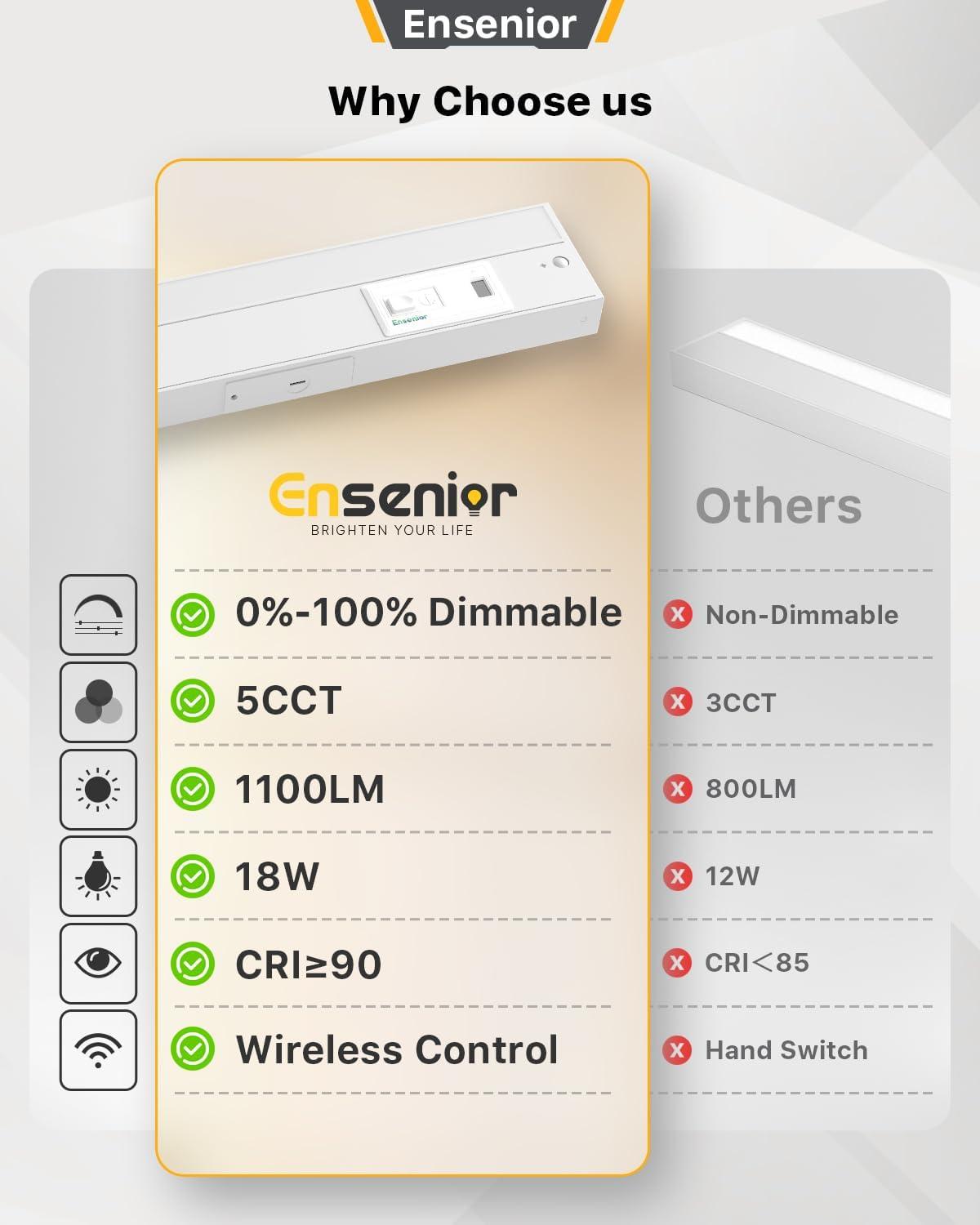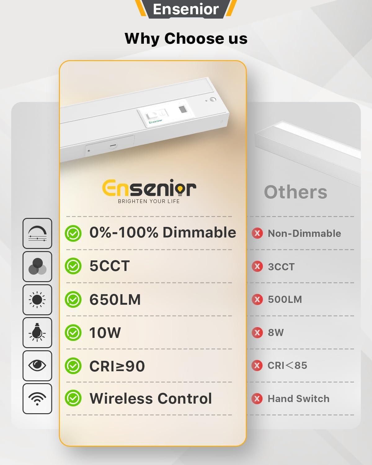 Be the first to review “Ensenior 12 Inch Hand Wave LED Under Cabinet Lighting Plug in or Hardwired with Dimmable 5CCT CRI 90+ 2.4G Wireless Sync, Under Counter Lights with for Kitchen, 5CCT, 120V, 8W 500LM, 2 Pack(1 Pack)”