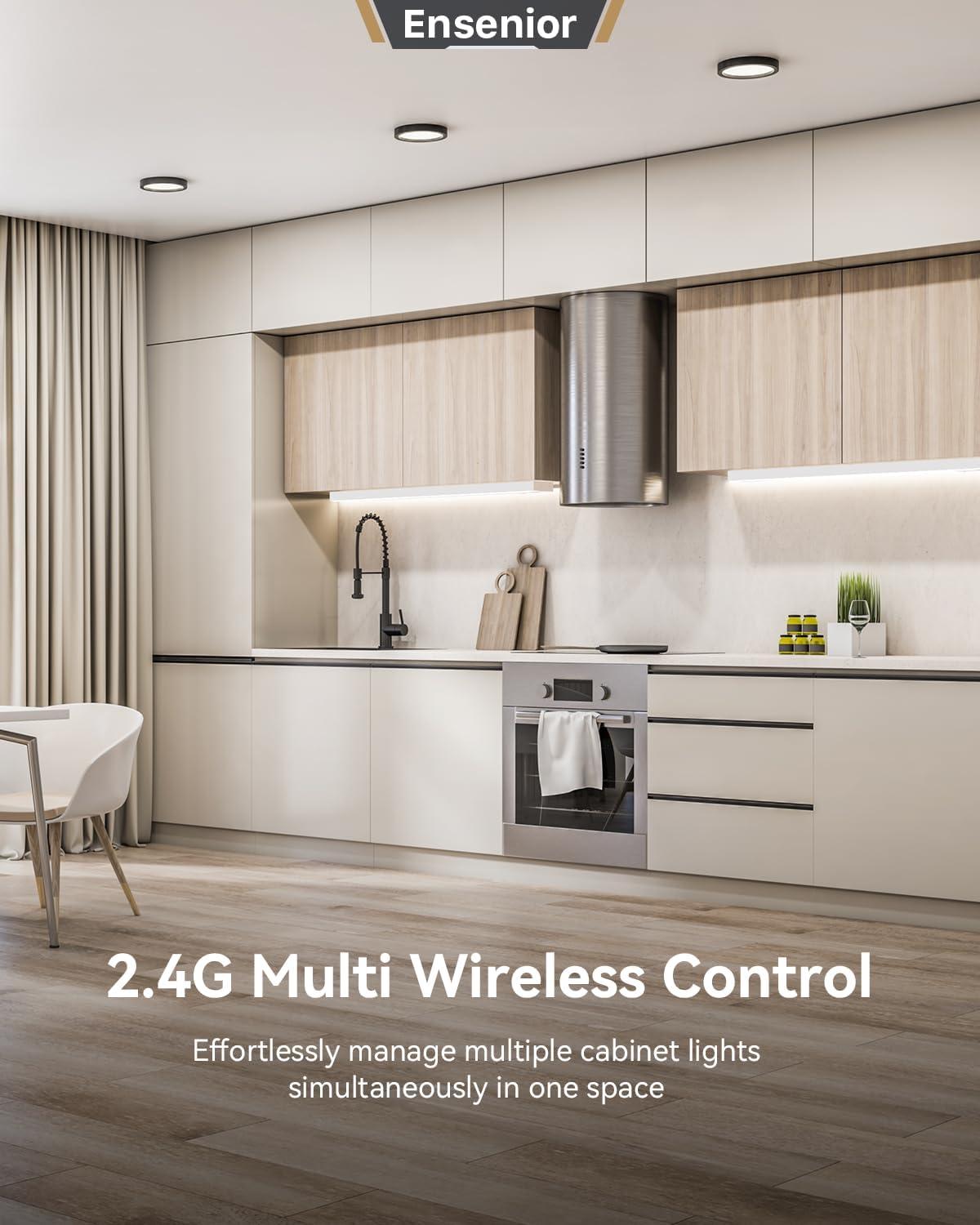 2.4G Wireless Control: With our upgraded 2.4G wireless control, effortlessly controls the switch, color temperature, and brightness of all under cabinet lights within the same space wirelessly by controlling just one light. Make your home more intelligent