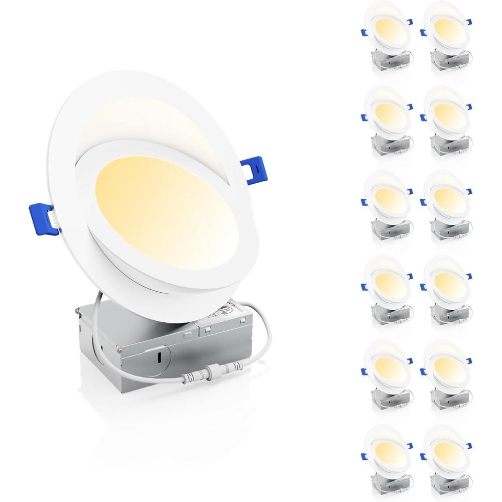 Ensenior 12 Pack 4 inch 5CCT LED Gimbal Led Recessed Light with Junction Box, 360°+90° Adjustable Directional Eyeball Lighting, Dimmable, 2700K/3000K/3500K/4000K/5000K, 950LM, 10W=85W-ETL&FCC(6 Inch)