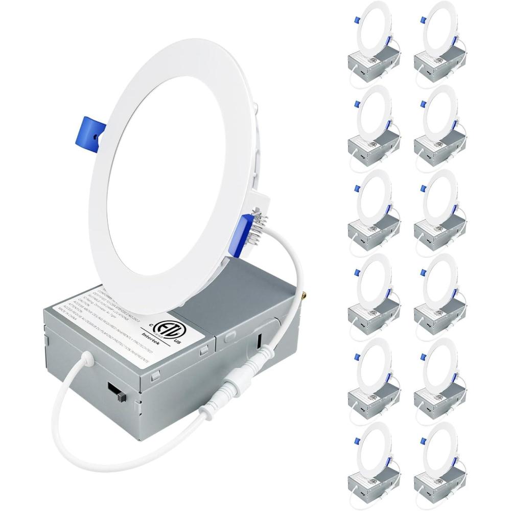 Ensenior 12 Pack 6 Inch LED Recessed Ceiling Light, Dimmable, 2700K-5000K 5CCT, 1200LM 12W 120V, High Brightness Canless Wafer Downlight – ETL&FCC&IC(4000k – Cool White)