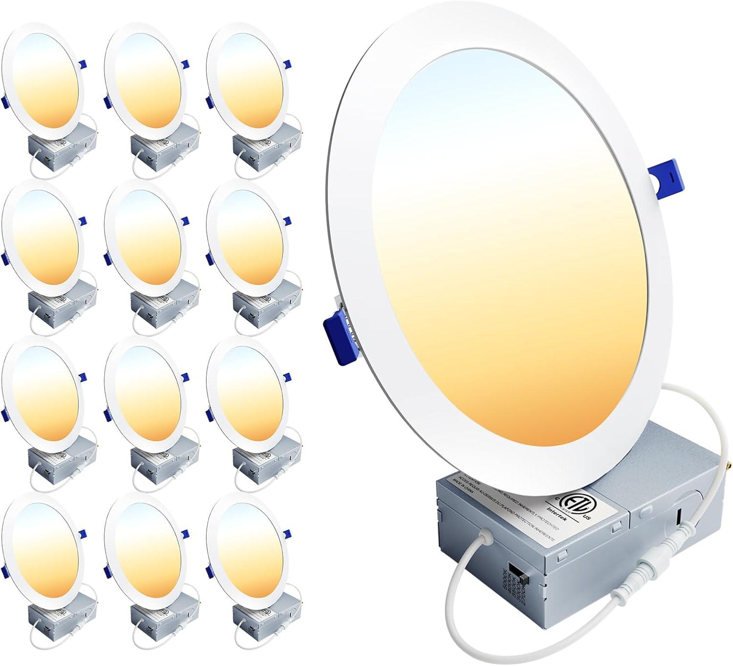 Ensenior 12 Pack 7 Inch LED Recessed Ceiling Light, Dimmable, 2700K-5000K 5CCT, 1300LM 15W 120V, High Brightness Canless Wafer Downligh(2700k/3000k/3500k/4000k/5000k - 5cct White)