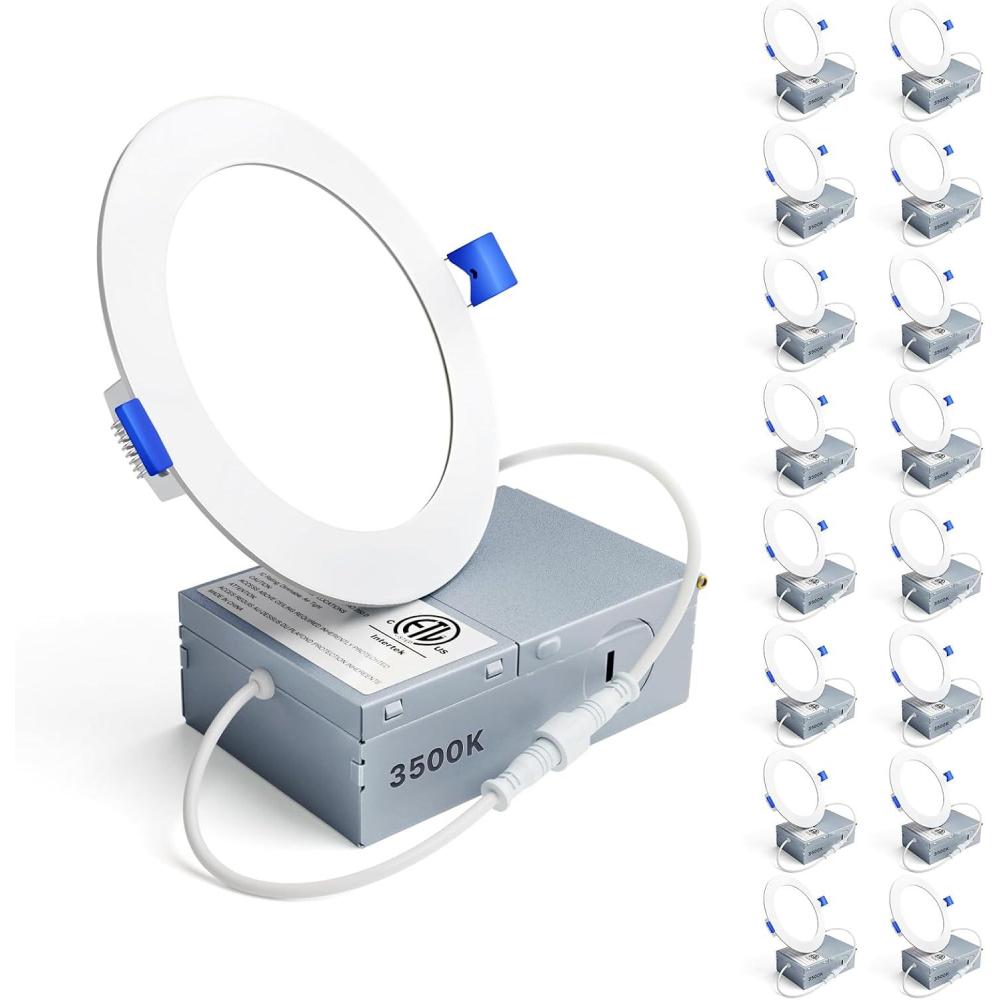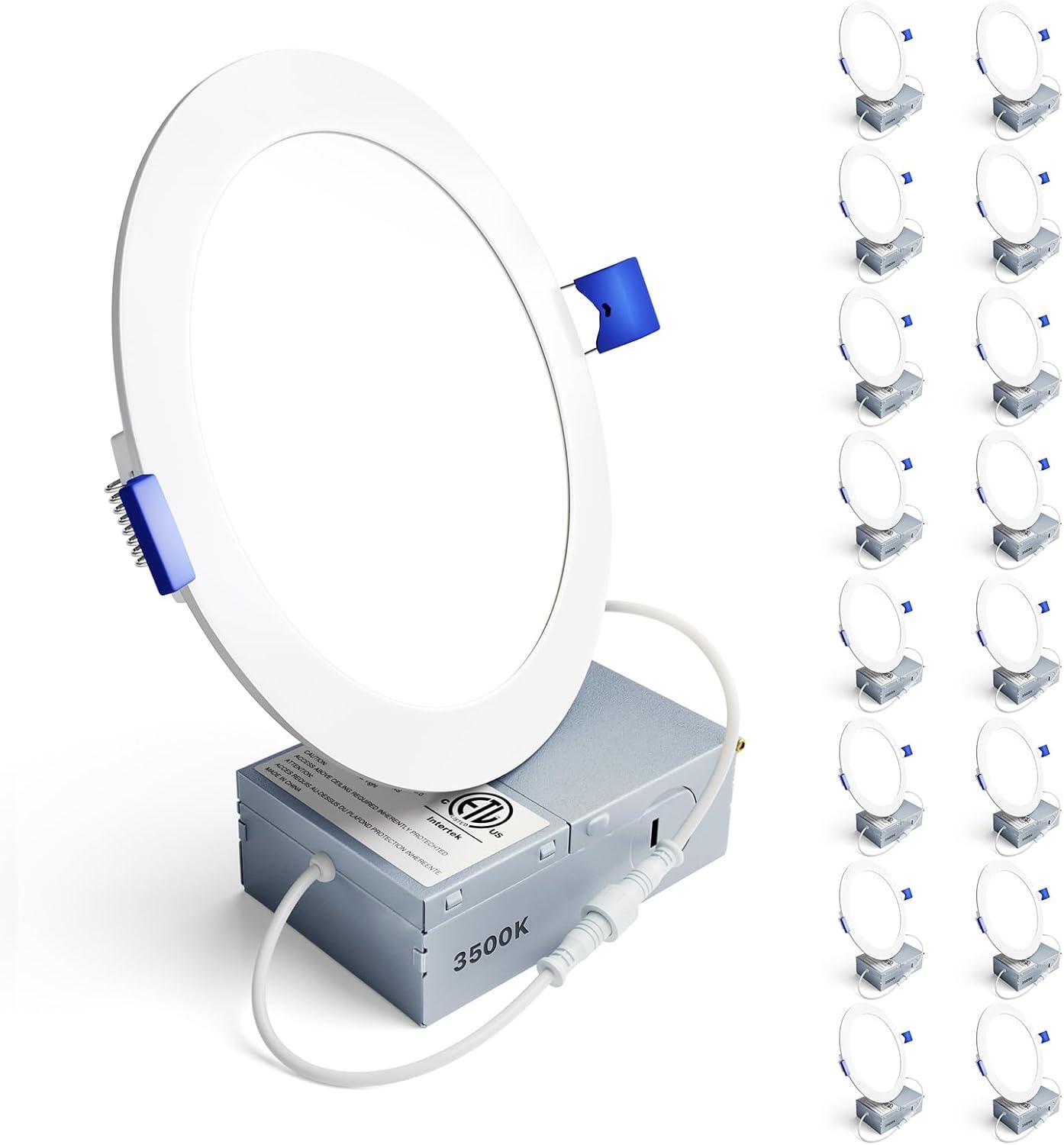 Ensenior 16 Pack 6 Inch LED Recessed Ceiling Light, 3500K Neutral White, 1050LM 12W 120V, High Brightness Canless Wafer Downlight Dimmable – ETL&FCC&IC(3500k – Neutral White)
