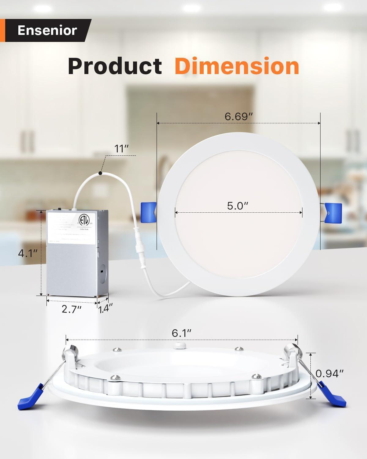 💡【IC Rated】Ensenior's light is IC rated, ETL & Energy Star certified, and features UL-certified wire terminals. Engineered with thermal protection and insulation compatibility, the junction box provides safety in 50000 hours life span.