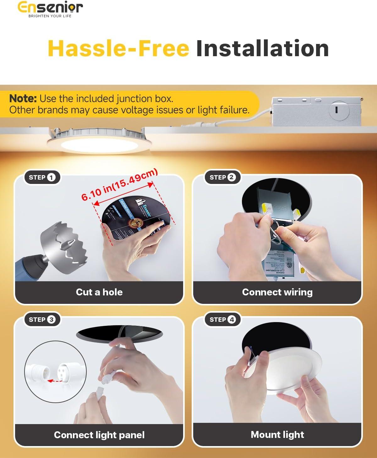 💡【IC Rated】Ensenior's light is IC rated, ETL & Energy Star certified, and features UL-certified wire terminals. Engineered with thermal protection and insulation compatibility, the junction box provides safety in 50000 hours life span.