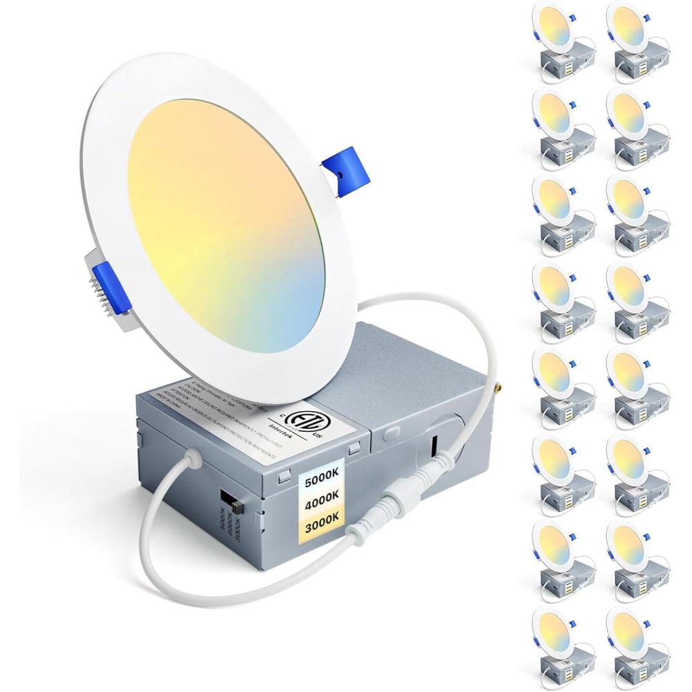 imageEnsenior 16 Pack 6 Inch LED Recessed Ceiling Light 3500K Neutral White 1050LM 12W 120V High Brightness Canless Wafer Downlight Dimmable  ETLampFCCampIC5000k4000k3500k3000k2700k  5cct White
