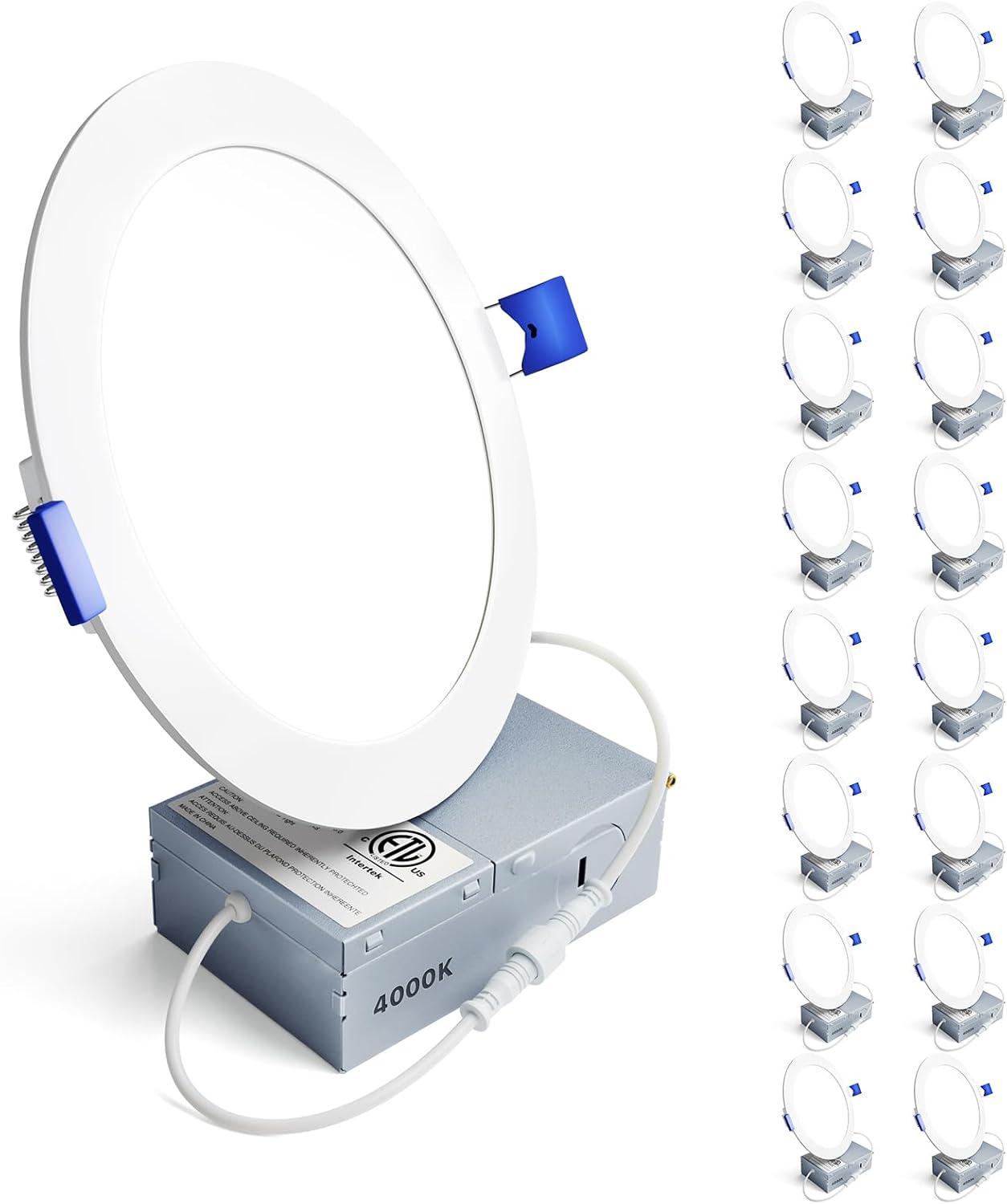 Ensenior 16 Pack 6 Inch LED Recessed Ceiling Light, Dimmable, 2700K-5000K 5CCT, 1050LM 12W 120V, High Brightness Canless Wafer Downlight – ETL&FCC&IC(4000k – Cool White)