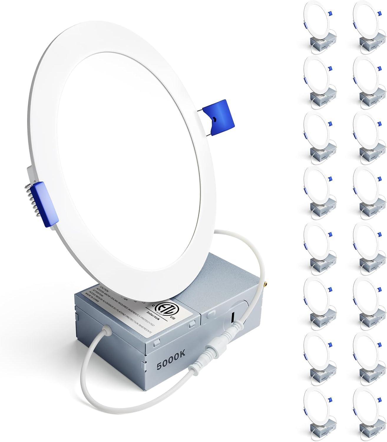 Ensenior 16 Pack 6 Inch LED Recessed Ceiling Light, Dimmable, 2700K-5000K 5CCT, 1050LM 12W 120V, High Brightness Canless Wafer Downlight – ETL&FCC&IC(5000k – Daylight)
