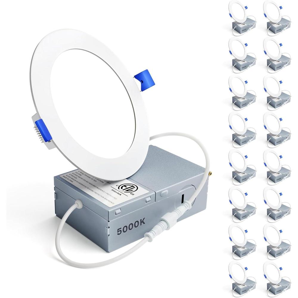Be the first to review “Ensenior 16 Pack 6 Inch LED Recessed Ceiling Light, Dimmable, 2700K-5000K 5CCT, 1050LM 12W 120V, High Brightness Canless Wafer Downlight – ETL&FCC&IC(5000k – Daylight)”