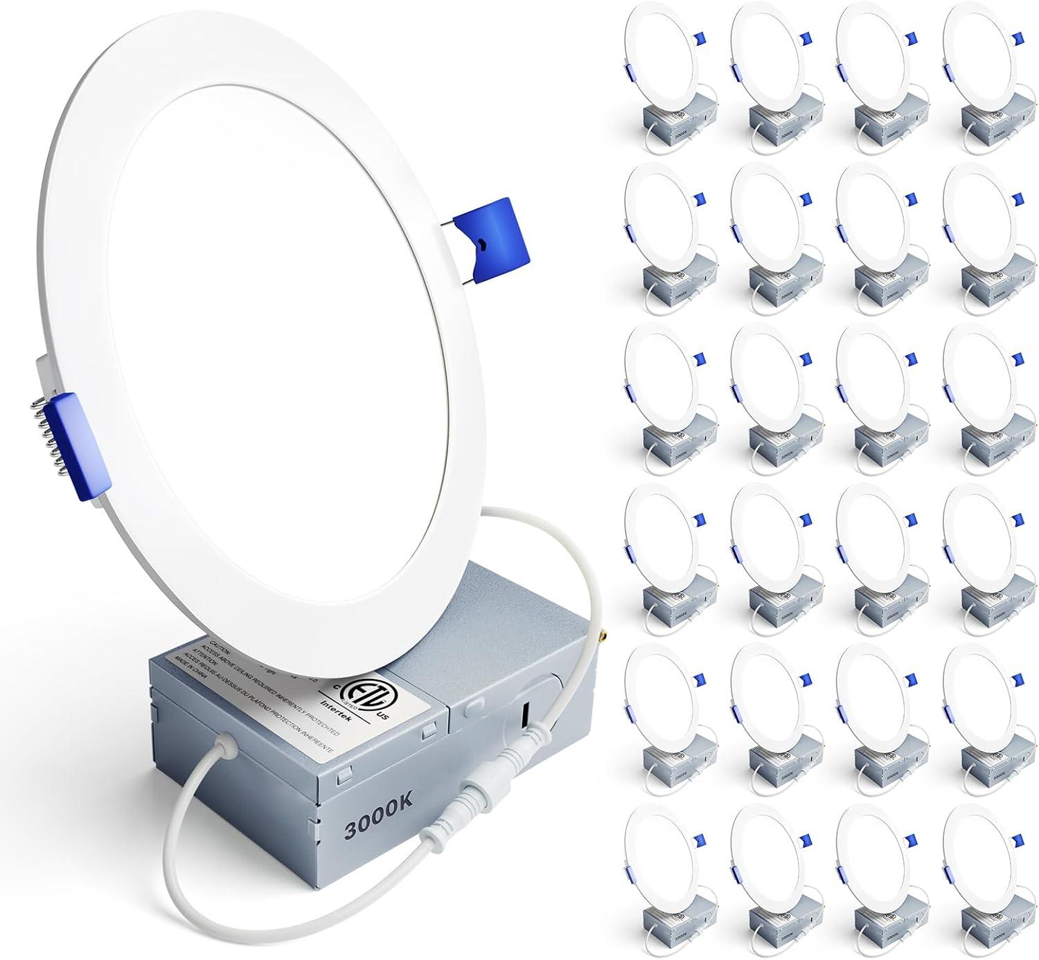 Ensenior 24 Pack 6 Inch LED Recessed Ceiling Light, Dimmable, 2700K-5000K 5CCT, 1200LM 12W 120V, High Brightness Canless Wafer Downlight – ETL&FCC&IC(3000k – Warm White)