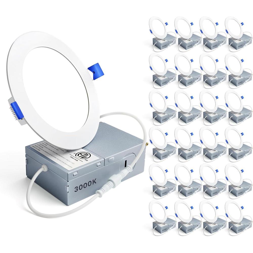 Ensenior 24 Pack 6 Inch LED Recessed Ceiling Light, Dimmable, 2700K-5000K 5CCT, 1200LM 12W 120V, High Brightness Canless Wafer Downlight - ETL&FCC&IC(3000k - Warm White)