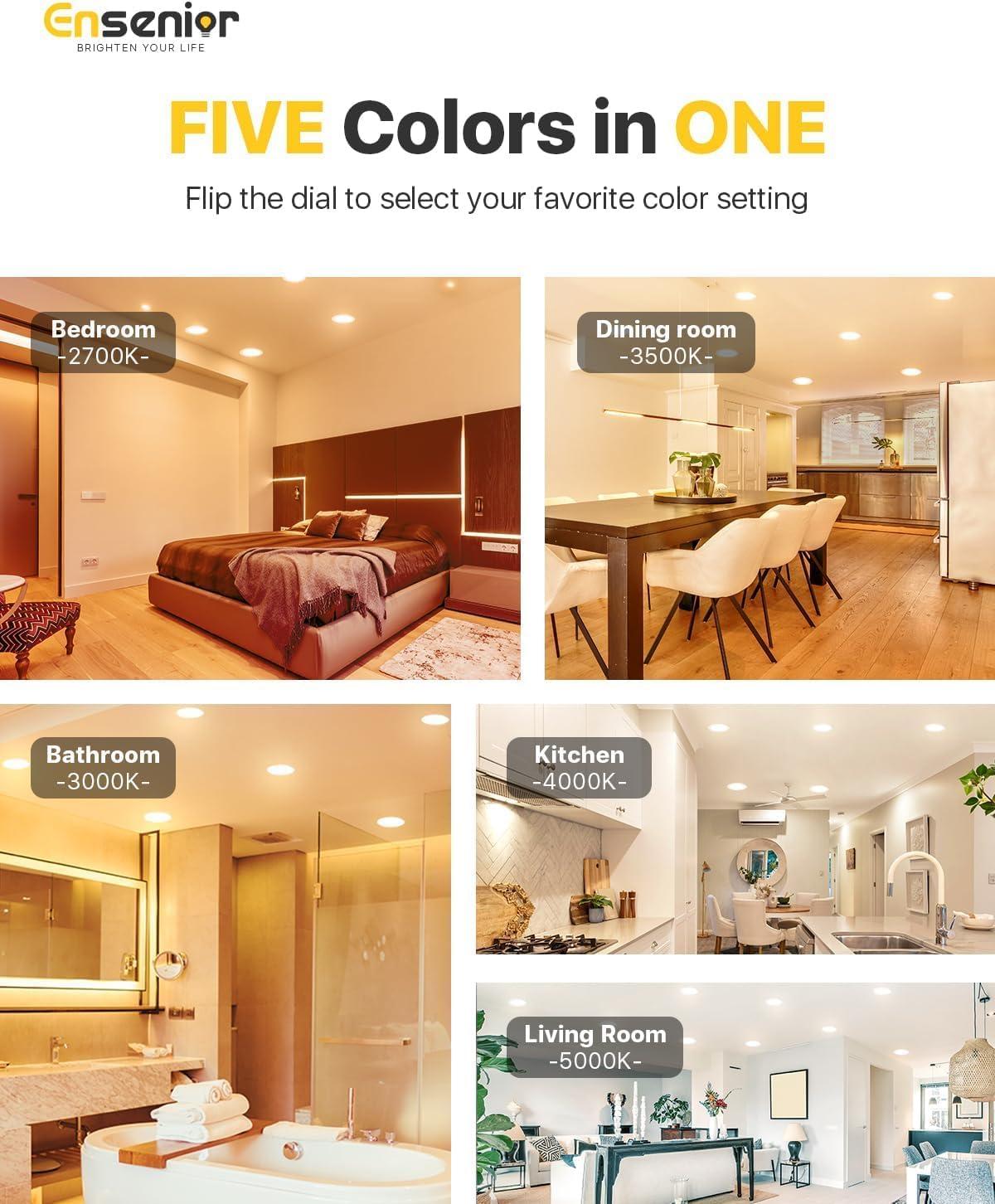 Ensenior 4 Inch 5CCT LED Can Lights with Night Light 4 Pack, Retrofit Led Recessed Lighting, Baffle Trim, Dimmable, 9W=110W, 1000LM(6 Inch)