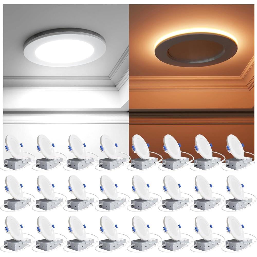 Ensenior 24 Pack 6 Inch LED Recessed Ceiling Light with Night Light, Dimmable, 2700K-5000K 5CCT, 1050LM 12W 120V, High Brightness Canless Wafer Downlight - FCC(4 Inch)