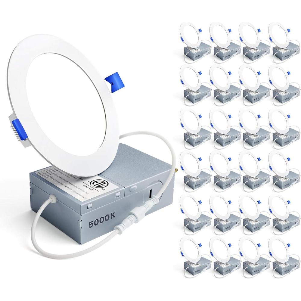 Ensenior 24 Pack 6 Inch LED Recessed Light, Dimmable, 6000K Clear White, 1200LM High Brightness, 12W 120V, Damp Rated, Ultra-Thin Canless Wafer Ceiling Light – ETL & FCC & IC(5000k/4000k/3500k/3000k/2700k – 5cct white)