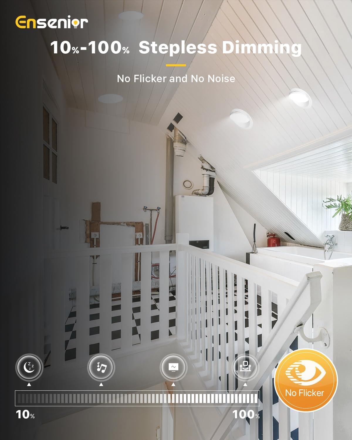 5CCT Selectable & 10%-100% dimmable: Choose your preferred color setting from 2700K/3000K/3500K/4000K/5000K with a simple click on the side of our directional recessed light. This eyeball light also offers smooth dimming capabilities (100%-10%), creating the perfect ambiance for any occasion.