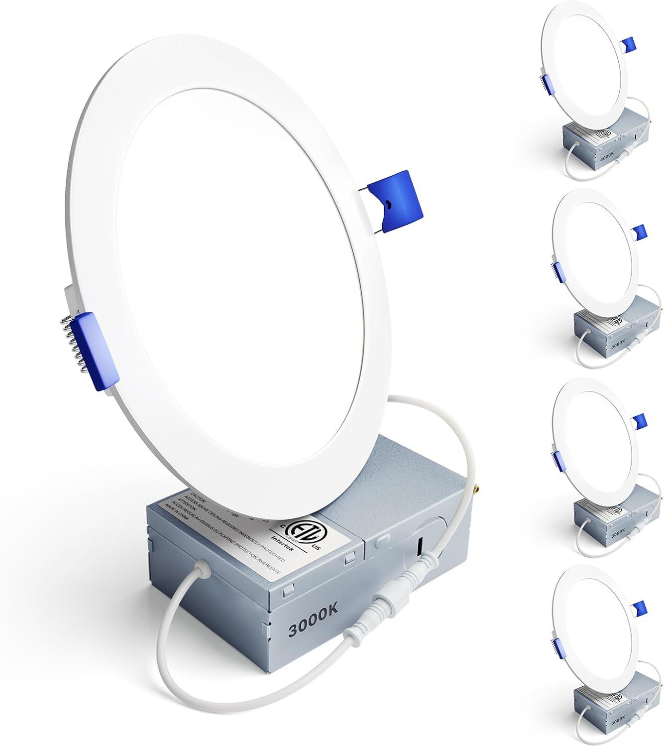 Ensenior 4 Pack 6 Inch LED Recessed Light, Dimmable, 2700K-5000K 5CCT, 1200LM High Brightness, 12W 120V, Damp Rated, Ultra-Thin Canless Wafer Ceiling Light - ETL & FCC & IC(3000k - Warm White)