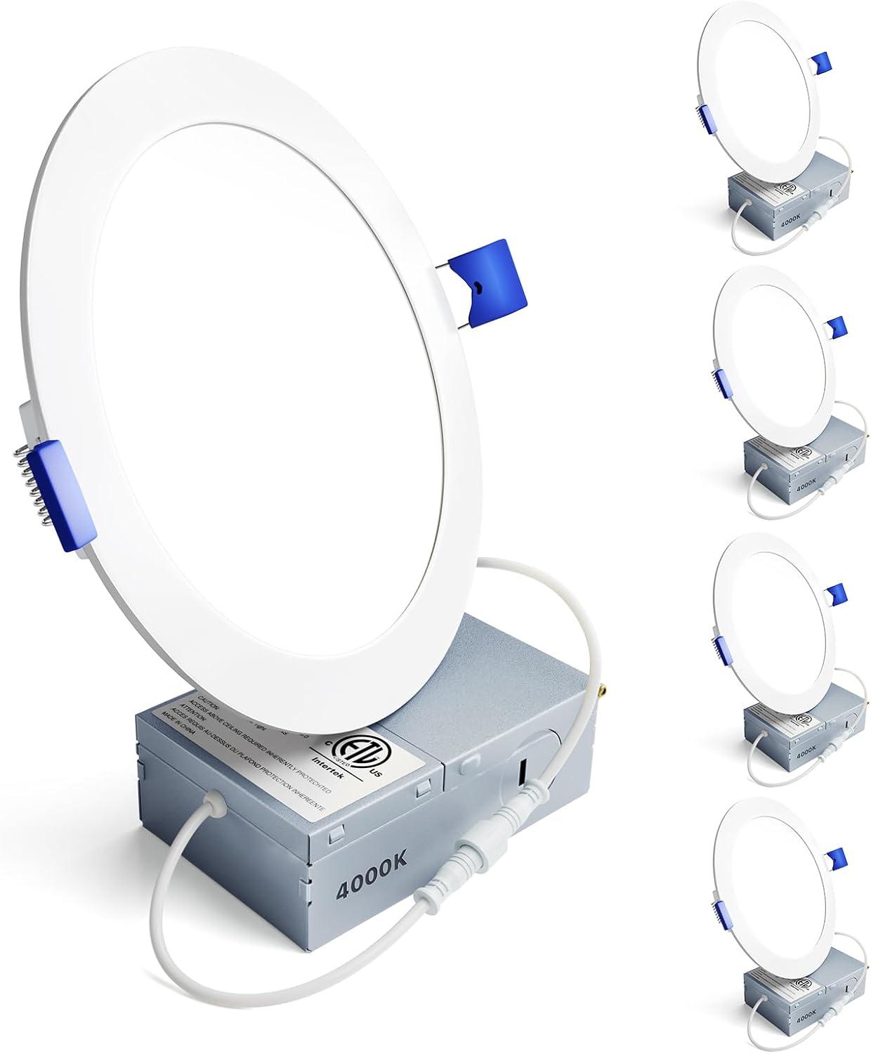 Ensenior 4 Pack 6 Inch LED Recessed Light, Dimmable, 2700K-5000K 5CCT, 1200LM High Brightness, 12W 120V, Damp Rated, Ultra-Thin Canless Wafer Ceiling Light - ETL & FCC & IC(4000k - Cool White)