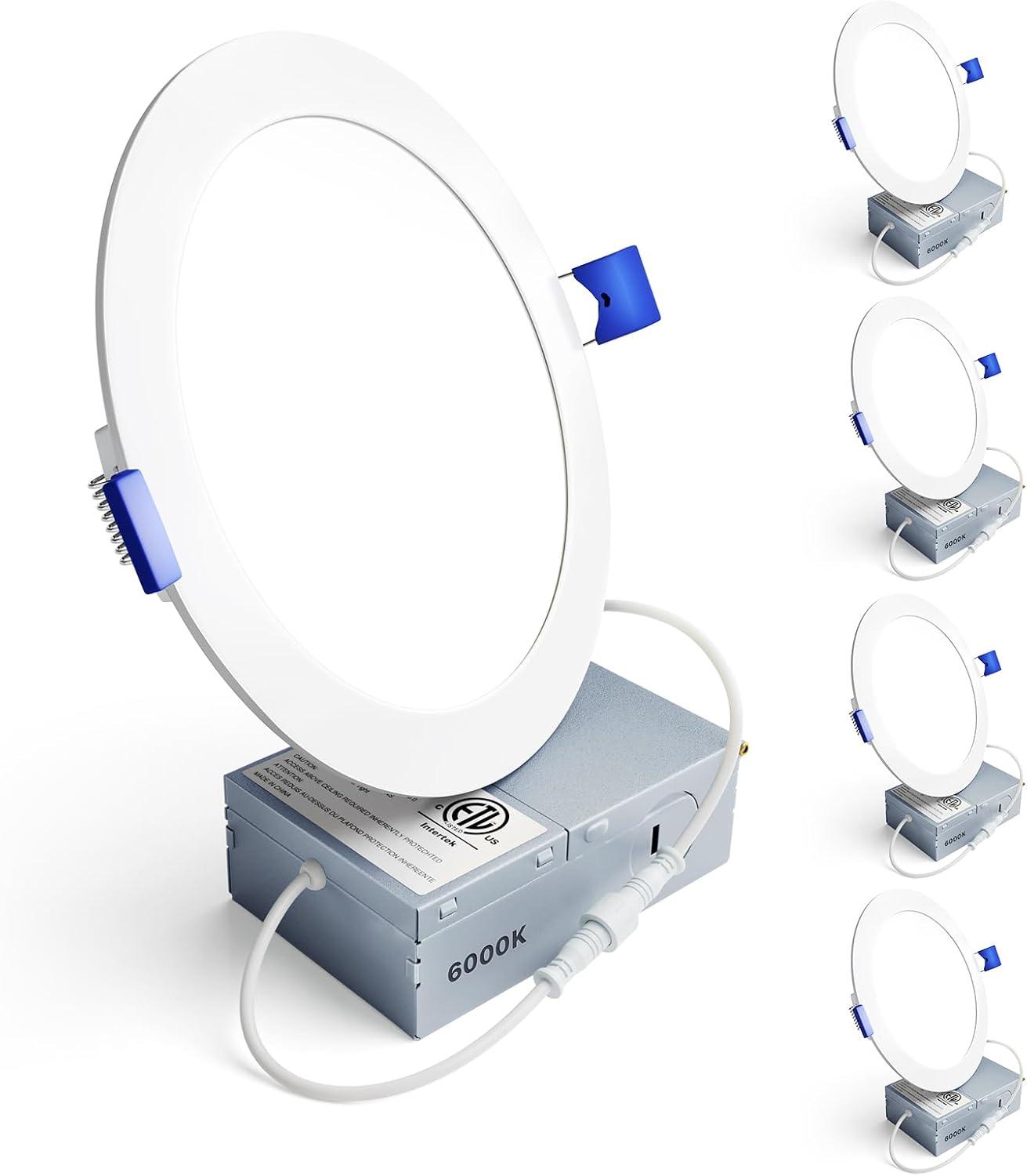 Ensenior 4 Pack 6 Inch LED Recessed Light, Dimmable, 2700K-5000K 5CCT, 1200LM High Brightness, 12W 120V, Damp Rated, Ultra-Thin Canless Wafer Ceiling Light – ETL & FCC & IC(6000k – Clear White)
