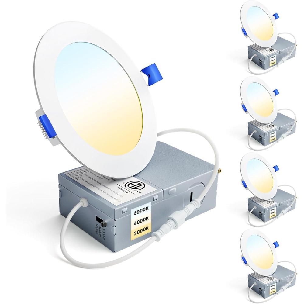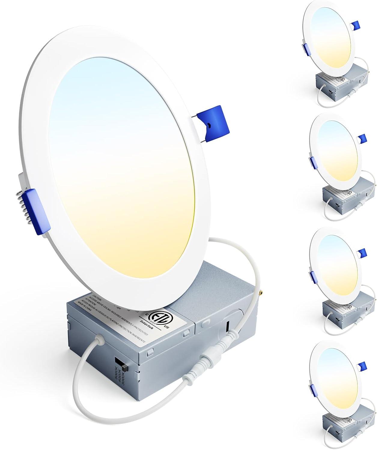 Ensenior 4 Pack 8 Inch LED Recessed Light, Dimmable, 2700K-5000K 5CCT, 1600LM High Brightness, 18W 120V, Damp Rated, Ultra-Thin Canless Wafer Light - ETL & FCC & IC(5000k/4000k/3000k - 3cct White)
