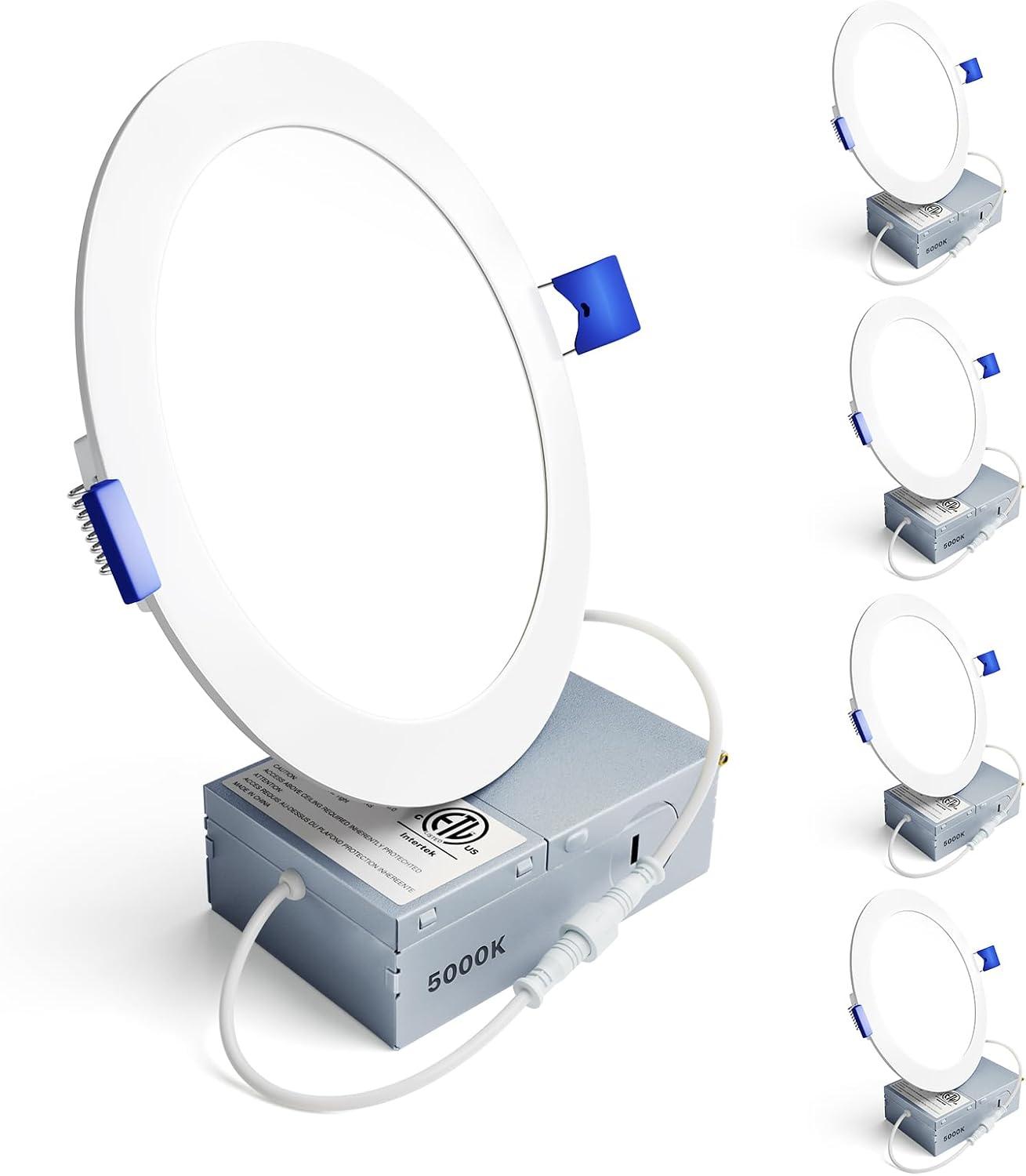 Ensenior 4 Pack 8 Inch LED Recessed Light, Dimmable, 2700K-5000K 5CCT, 1600LM High Brightness, 18W 120V, Damp Rated, Ultra-Thin Canless Wafer Light - ETL & FCC & IC(5000k - Daylight)