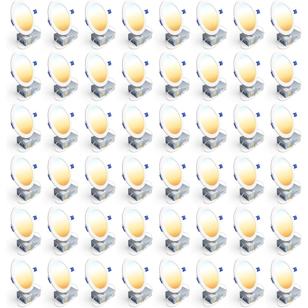 Ensenior 48 Pack 6 Inch LED Recessed Light, Dimmable, 2700K-5000K 5CCT, 1200LM High Brightness, 12W 120V, Damp Rated, Ultra-Thin Canless Wafer Ceiling Light - ETL & FCC & IC(6 Inch)