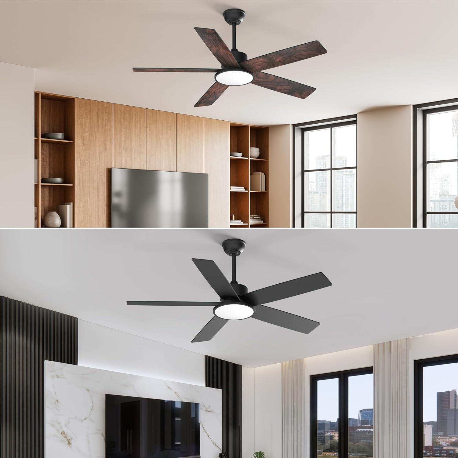 【Quiet 6-Speeds DC Motor】Enjoy powerful airflow (up to 5500 CFM) with whisper-quiet operation (<35dB)—this black ceiling fan is perfect for bedrooms, nurseries, or home offices. The reversible motor of the ceiling fan with lights remote control switches between summer cooling (downdraft) and winter heating (updraft), keeping you comfy year-round.