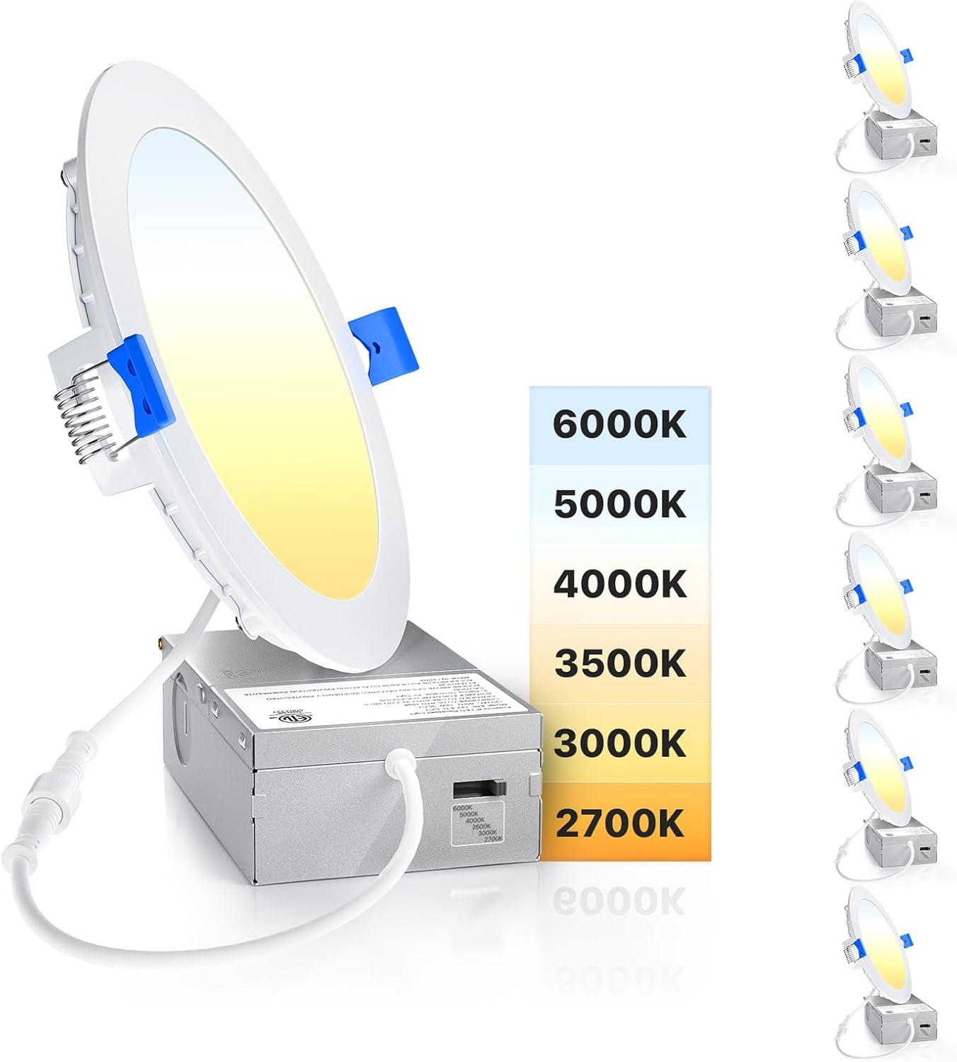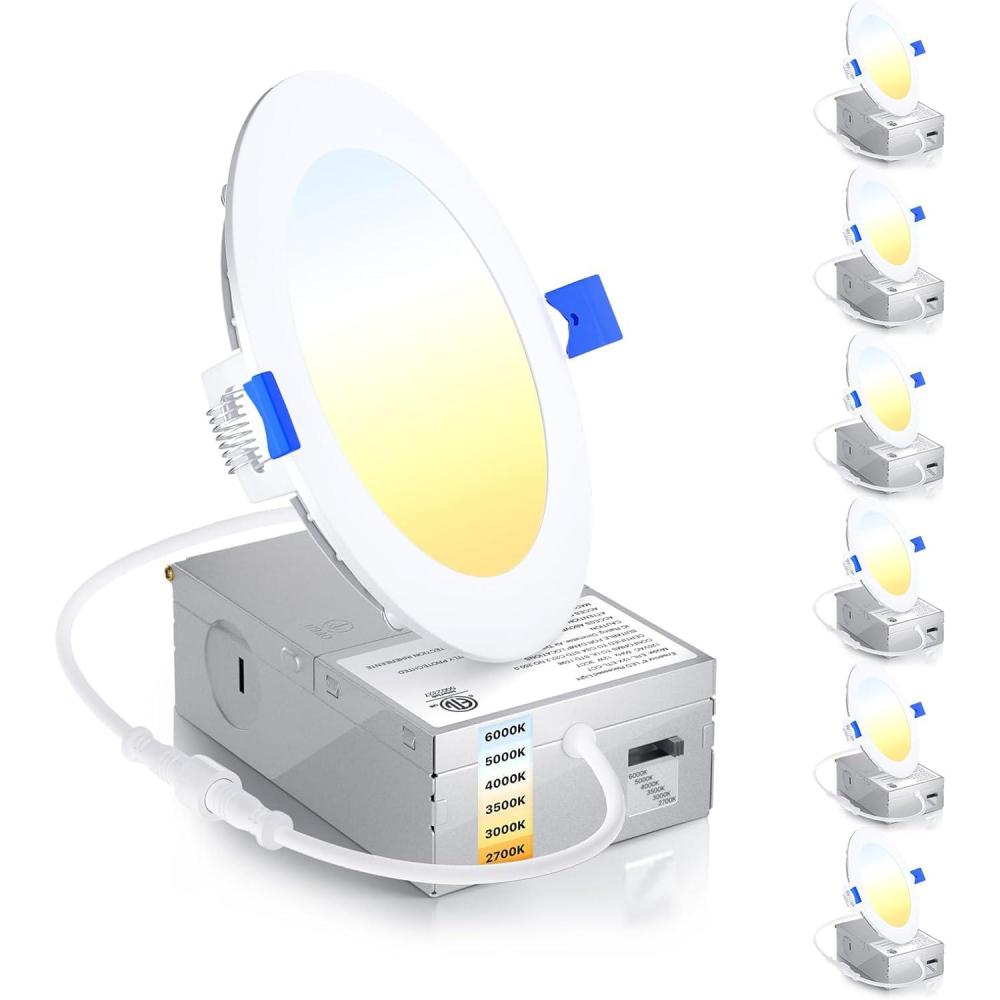 Ensenior 6 Pack 7 Inch LED Recessed Ceiling Light, Dimmable, 2700K-5000K 5CCT, 1300LM 15W 120V, High Brightness Canless Wafer Downlight(6000k/5000k/4000k/3500k/3000k/2700k - 6cct white)