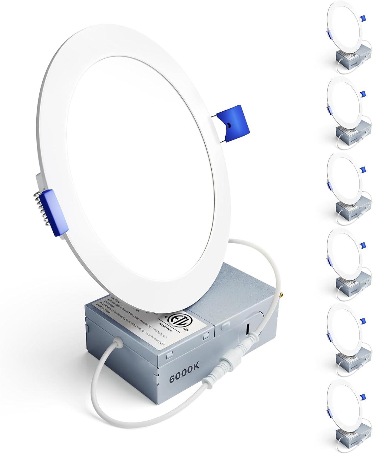 Ensenior 6 Pack 7 Inch LED Recessed Ceiling Light, Dimmable, 2700K-5000K 5CCT, 1300LM 15W 120V, High Brightness Canless Wafer Downlight(6000k – Clear White)