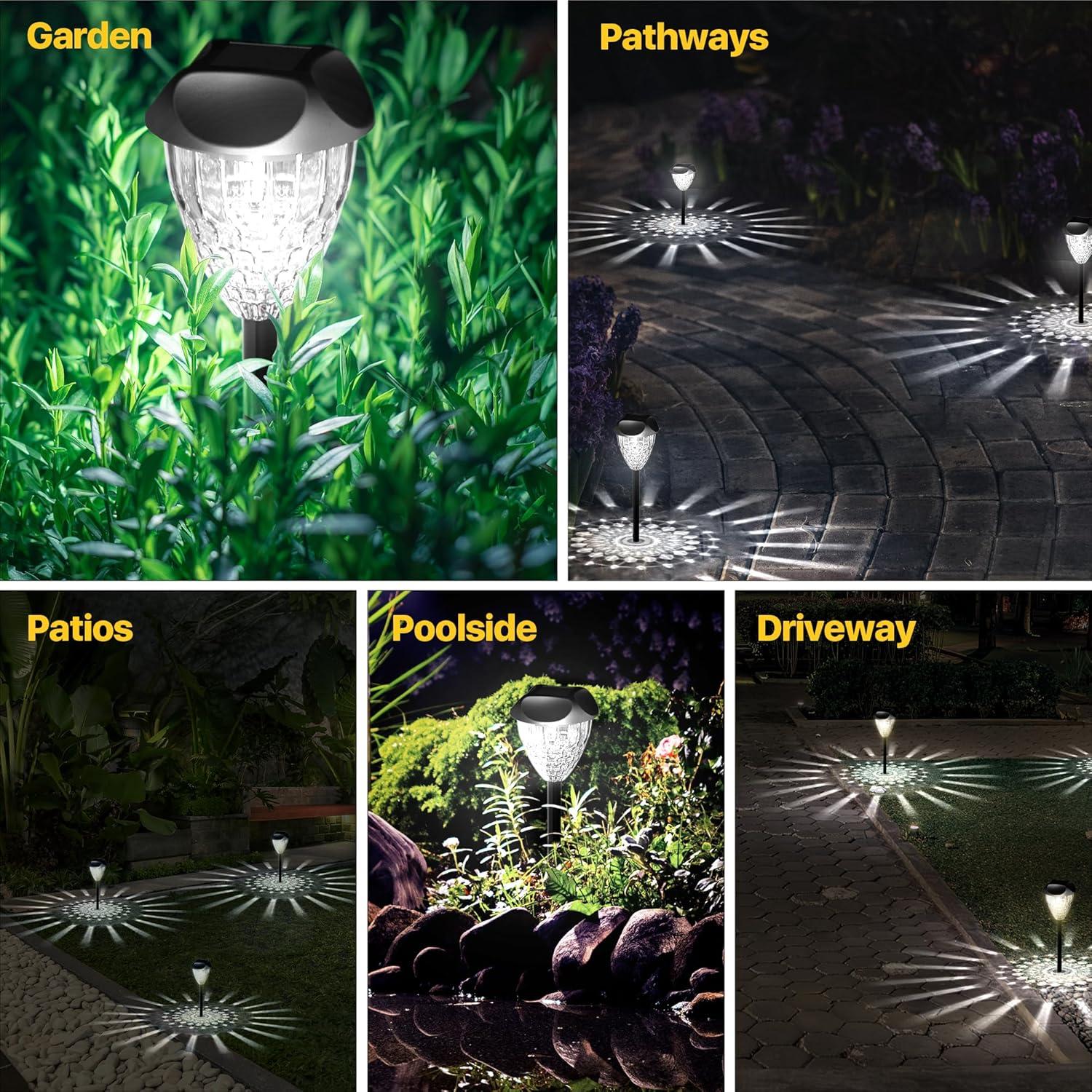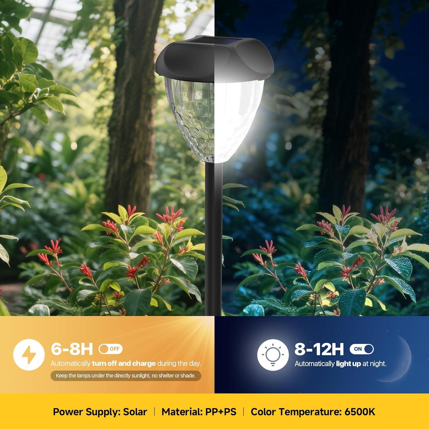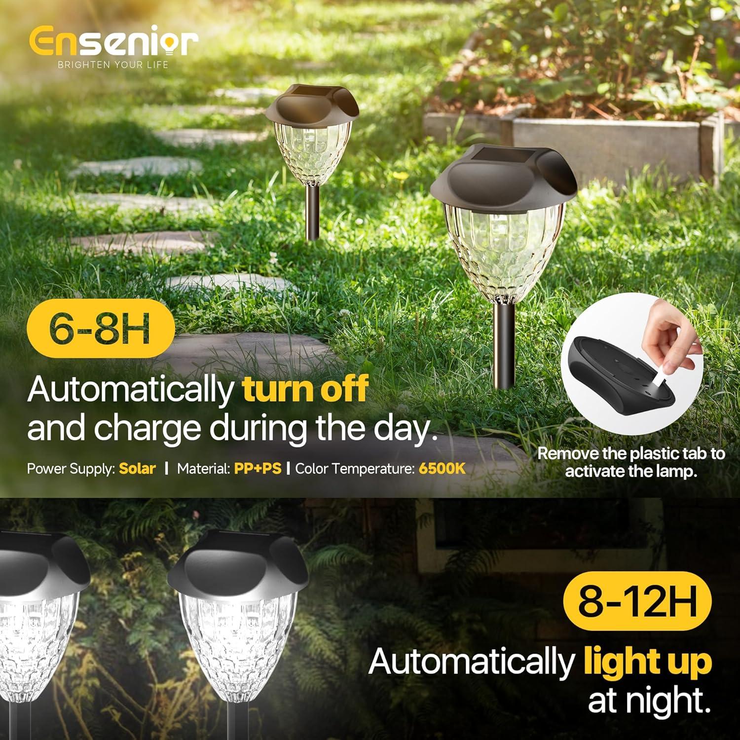 Ensenior 8-Pack Solar Lights Outdoor, Auto ON/Off 6500K LED Solar Garden Lights for Pathway, Yard, Patio, Walkway, Planter, Waterproof, Energy-Efficient Landscape Lighting(Cool White)