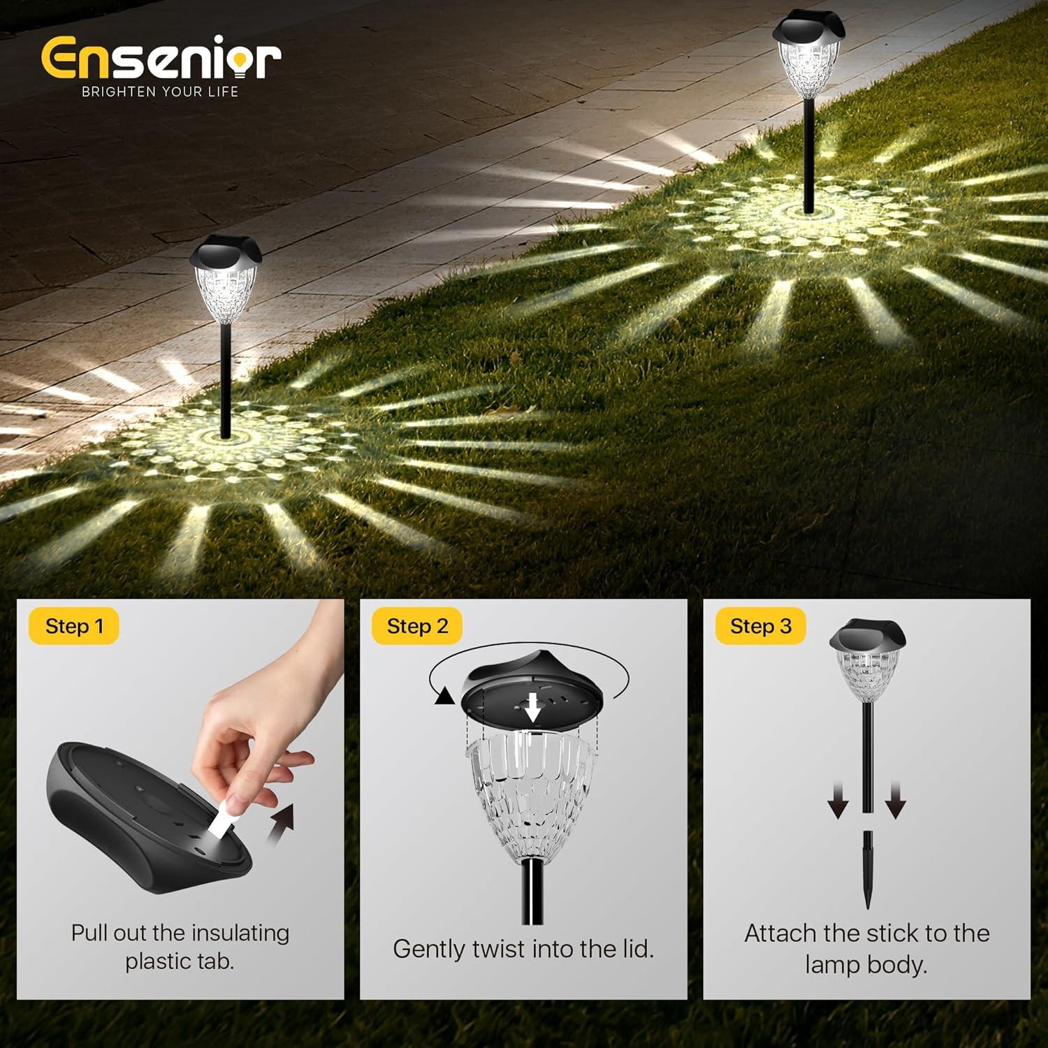 Ensenior 8-Pack Solar Lights Outdoor, Auto ON/Off 6500K LED Solar Garden Lights for Pathway, Yard, Patio, Walkway, Planter, Waterproof, Energy-Efficient Landscape Lighting(Warm White)
