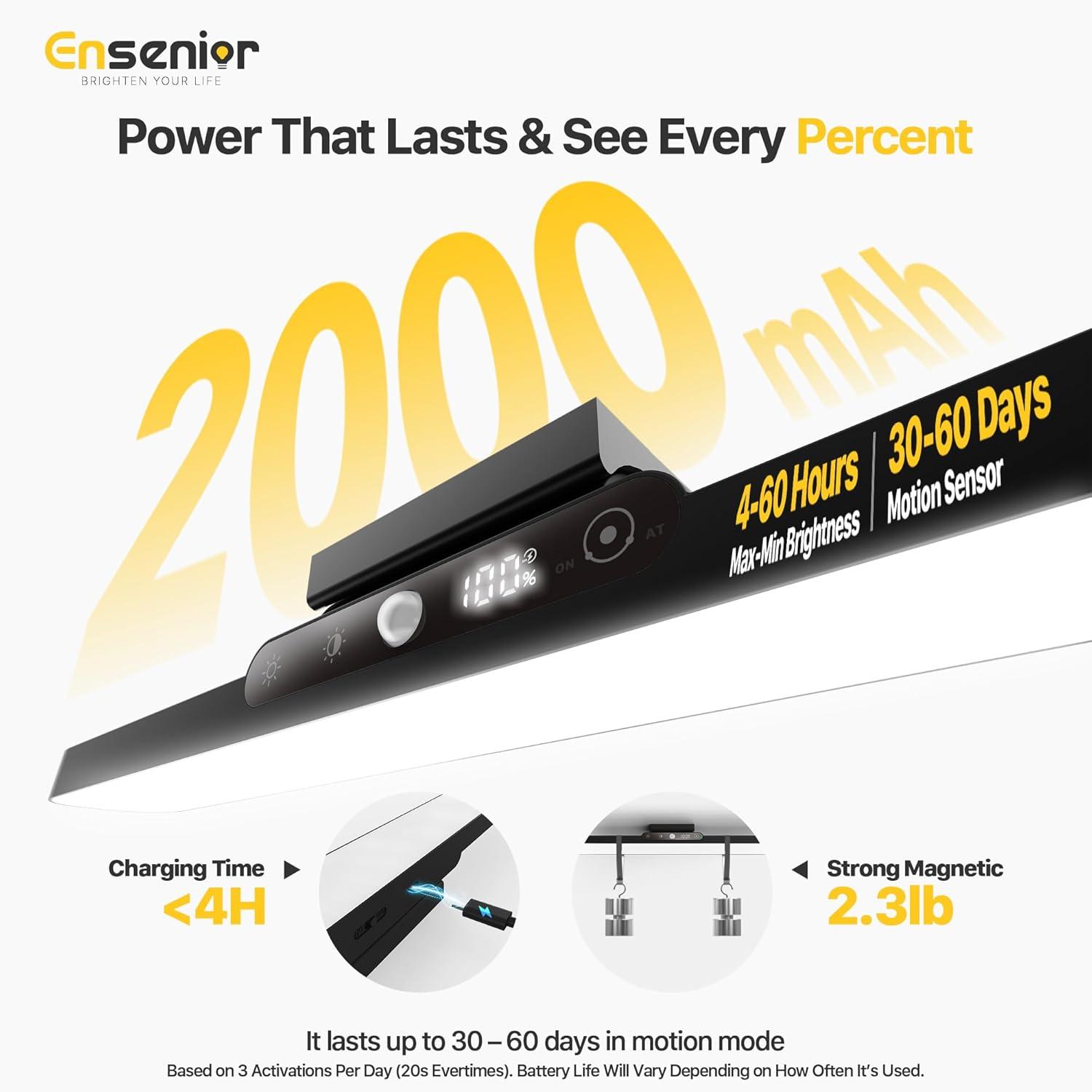 Real-Time Battery Display and Long-Lasting Power: Stay in control with our magnetic light bar. Battery operated lights show real-time power, 2500mAh capacity, and 4-60 hour runtime. Dependable battery powered lights ensure lasting brightness