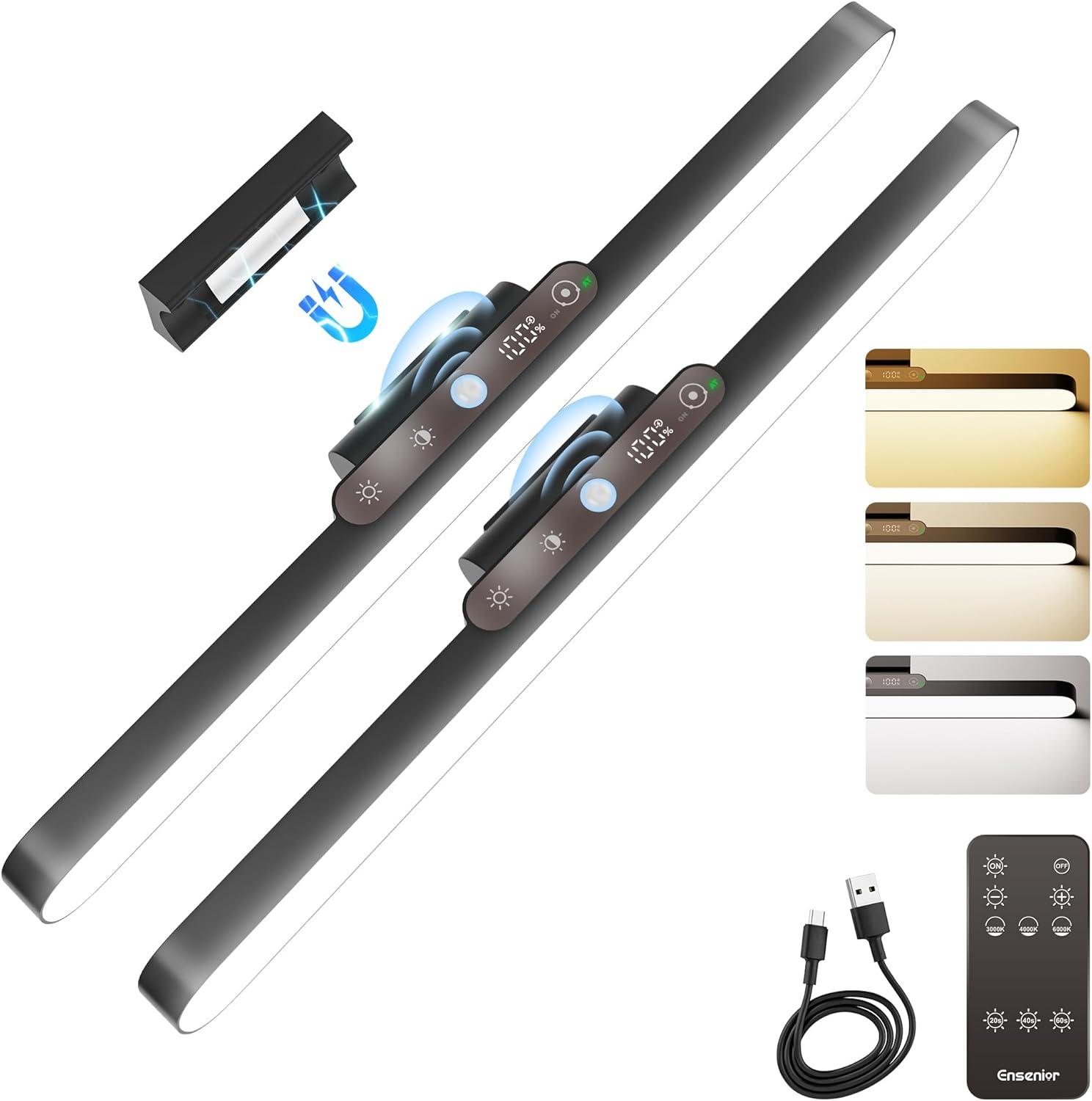 Ensenior Makeup Light, 14 inch Rechargeable Vanity Lights for Mirror with Auto Off Timer Remote Magnetic Stepless Dimming 3CCT 2500mAh Battery, Under Cabinet Lighting Wireless for Kitchen, 2 Pack(Touch Remote & Motion)