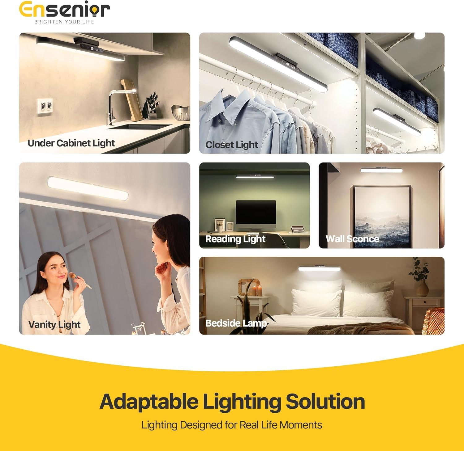 Multi-Scene Lighting Made Easy: This versatile fixture serves as elegant kitchen lights, sleek under-cabinet lighting, cozy desk lighting, a picture light, or mirror light—effortlessly enhancing most space with warm, inviting illumination