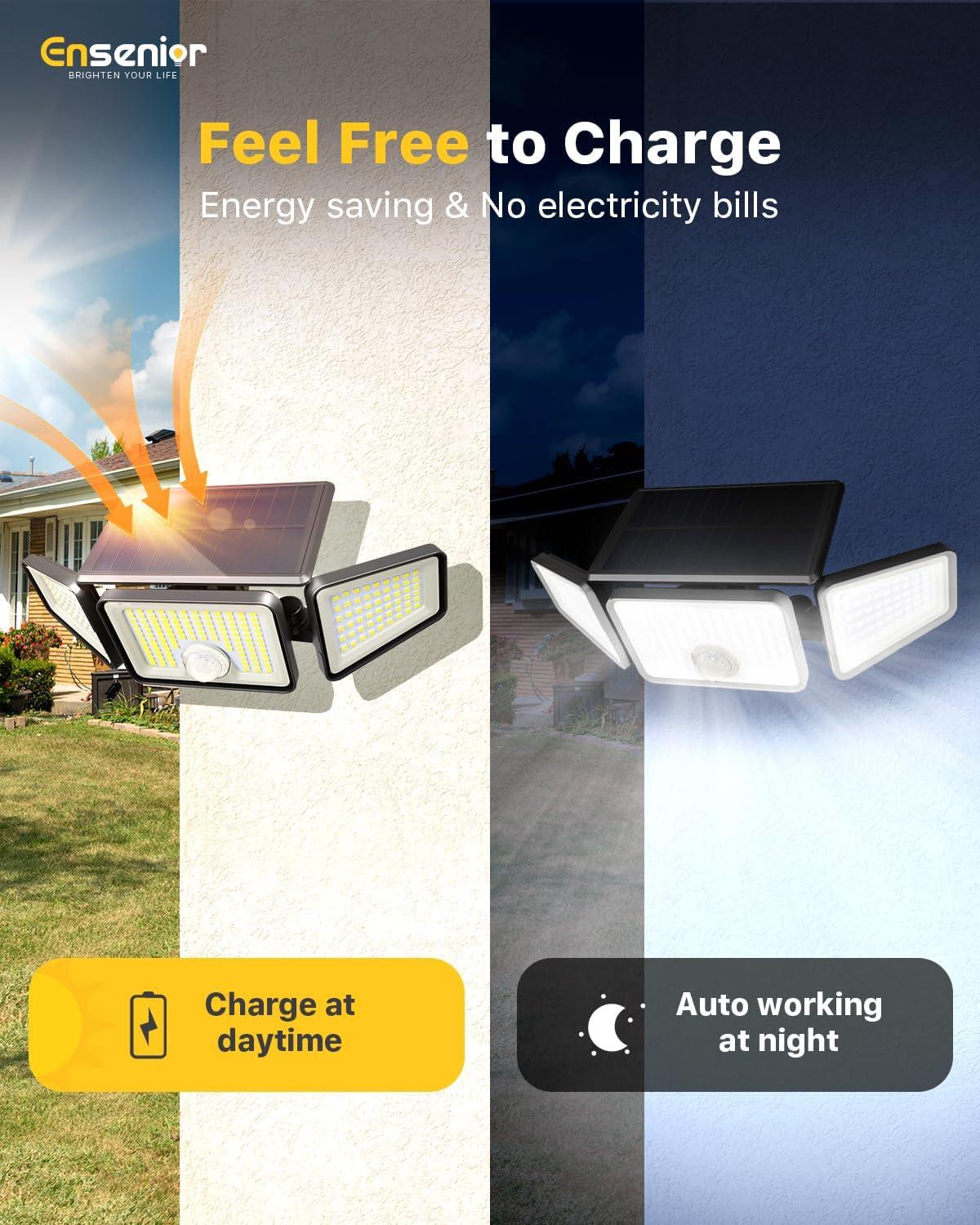 Easy to Install & After-sales Service: No need to wiring! Ensenior solar powered outdoor lights is easy to install. Just need to use the included screws to fix on the exterior wall. Your purchase includes a 3-year warranty and top-notch customer support for hassle-free maintenance