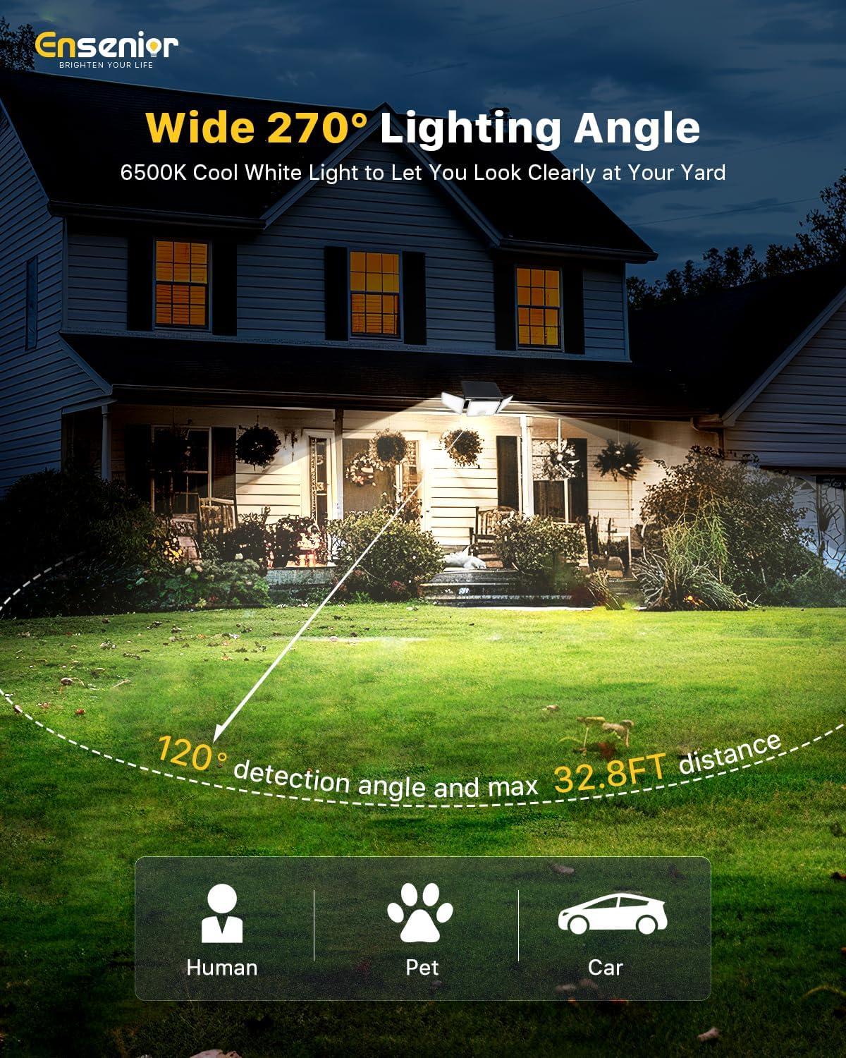 Easy to Install & After-sales Service: No need to wiring! Ensenior solar powered outdoor lights is easy to install. Just need to use the included screws to fix on the exterior wall. Your purchase includes a 3-year warranty and top-notch customer support for hassle-free maintenance