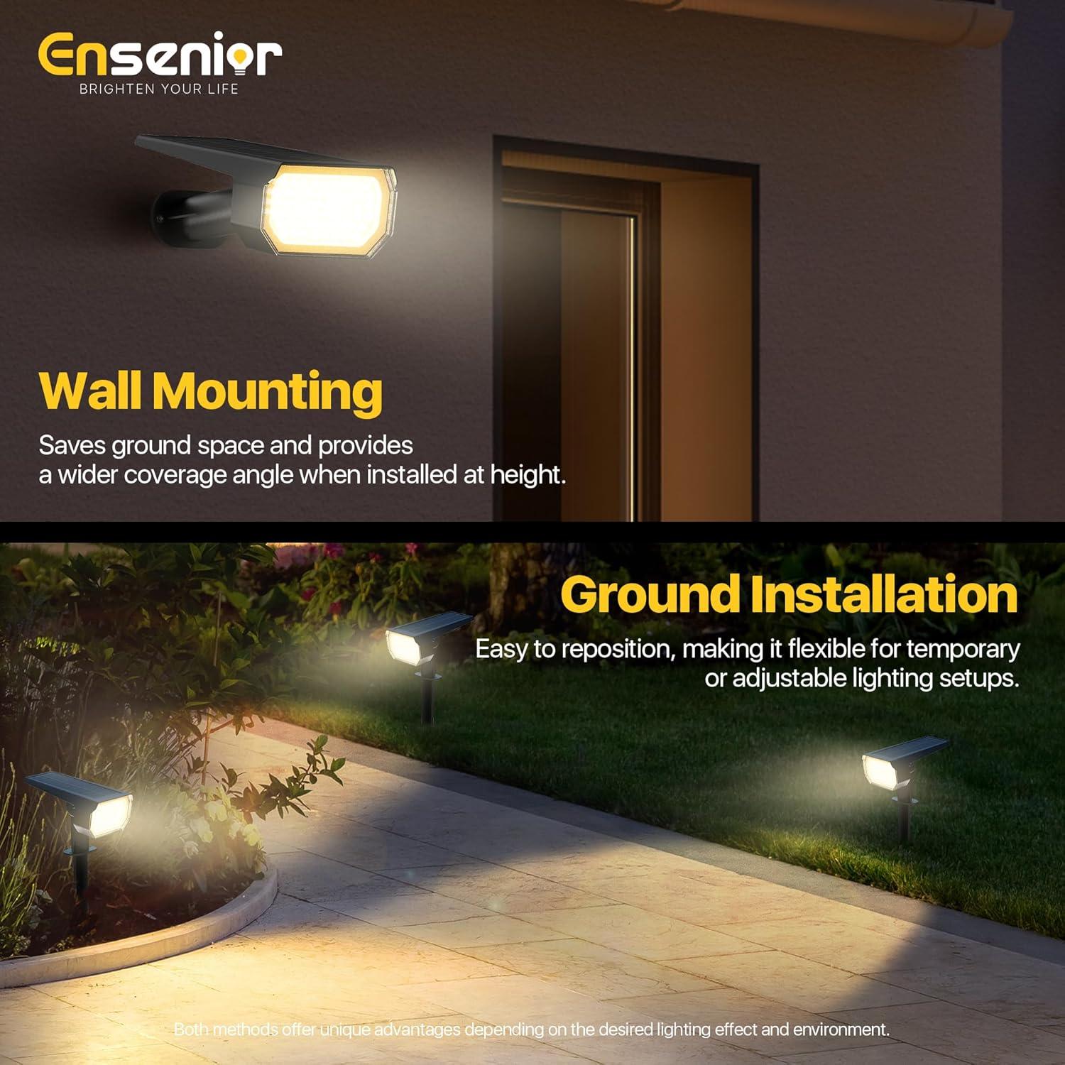 Flexible Installation Options – Install effortlessly via ground stakes or wall mounting. Adjust the 120° angle and 56 high-brightness LEDs to illuminate gardens, pathways, driveways, pool areas, or garage gates.